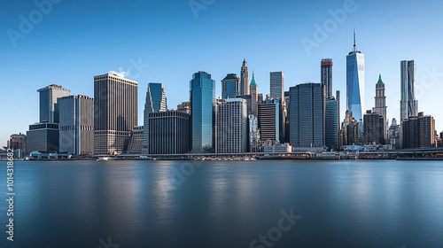 © Sadia, Naklejka premium A panoramic view of New York City skyline under clear blue skies