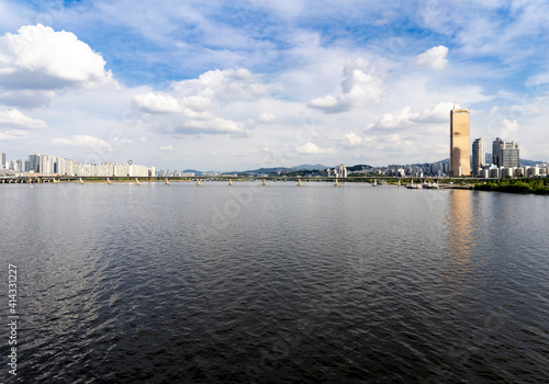 Naklejka premium A panoramic view of the city with a view of the Han River in Seoul