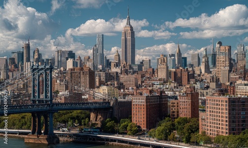 Naklejka premium A panoramic view of the New York City skyline, with buildings like the Empire...