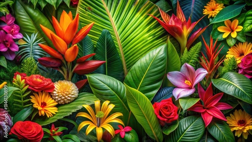 © Autun, Naklejka premium A panoramic view showcases a vibrant, lush tropical paradise teeming with life.