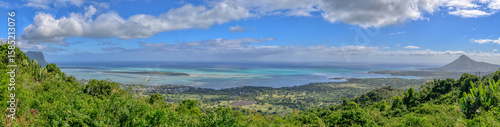 Fototapeta premium A panoramic view towards Le Morne and Ile Aux Benitiers