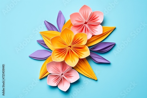 Fototapeta premium a paper flower made using an origami pattern on a pink background