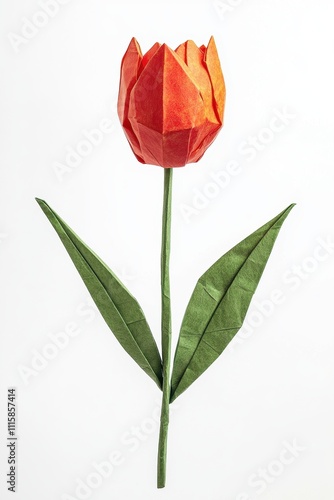 © Flowaiart, Obraz premium A paper flower with a green stem and orange petals