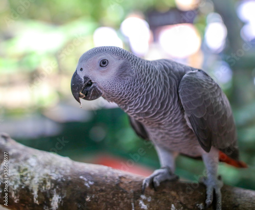 © schankz, Fototapeta premium A parrot eats a seed in the park.