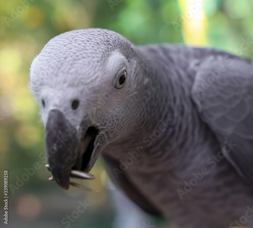 © schankz, Fototapeta premium A parrot eats a seed in the park.