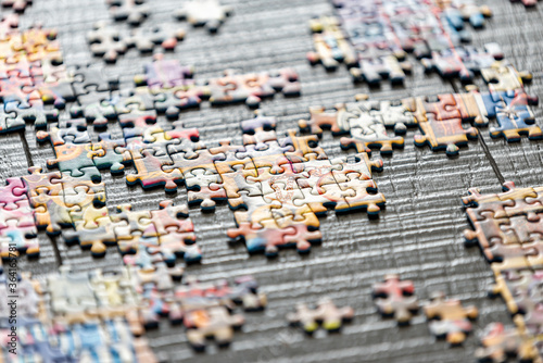 Obraz premium A partially completed puzzle on wood table