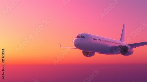 © Creator88, Obraz premium A passenger plane framed by a radiant sunset, with a glowing orange and purple backdrop