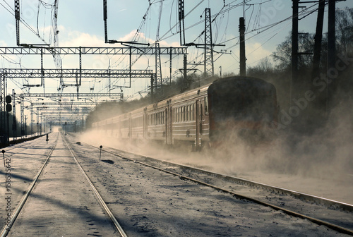 © Chekunov Alexandr, Fototapeta premium A passenger train goes by rail in winter