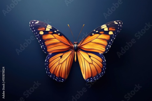 © Muhammad, Fototapeta premium A pastel butterfly on a dark blue background in minimalist isometric 3D style.