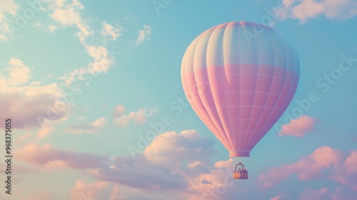 © Napasnan, Fototapeta premium A pastel-hued hot air balloon floating gently above the countryside.