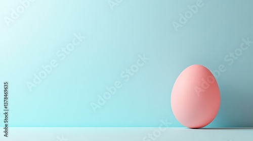 © Boonnam Burart, Fototapeta premium A pastel pink egg resting gently on a baby blue surface with soft lighting