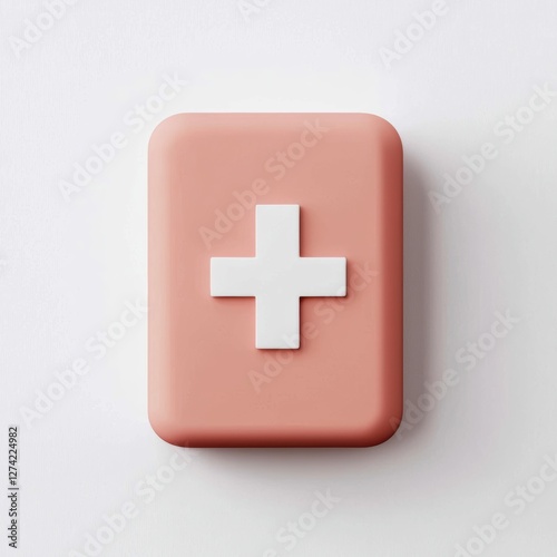 © JP STUDIO LAB, Obraz premium a pastel pink first aid kit with a soft white cross, modern and minimalistic design, smooth texture, isolated on white background