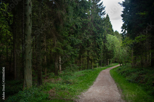 © Charlee_P., Fototapeta premium A path goes through a lush pinewood forest