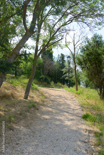 © alexnikit, Fototapeta premium A path going up for walking in the park with trees and lanterns