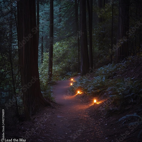 © Atthapon, Obraz premium A path in a forest with lit candles on it