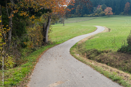 © jr-art, Fototapeta premium A path in a park with trees and grass