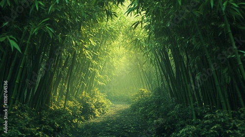 © muhammad, Fototapeta premium a path in the middle of a bamboo forest
