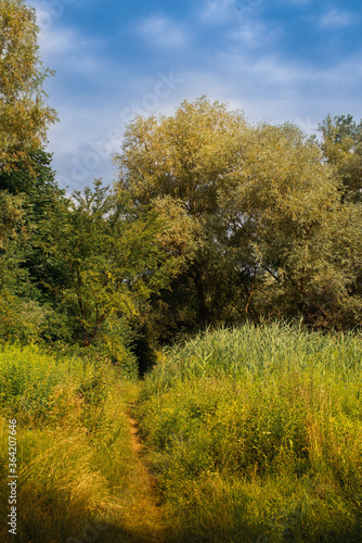 © Viktor Boiko, Fototapeta premium A path in the thickets of reeds and grass that goes into the forest