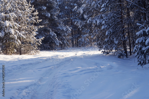 © Дина Морозова, Fototapeta premium A path in the winter forest after a snowfall.