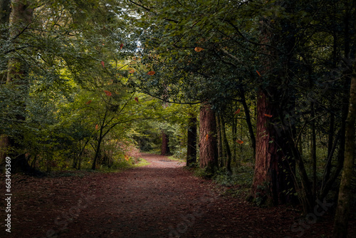 Naklejka premium A path though the woodland in Autumn in South Wales UK