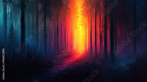 Obraz premium A Path Through a Colorful, Mystical Forest