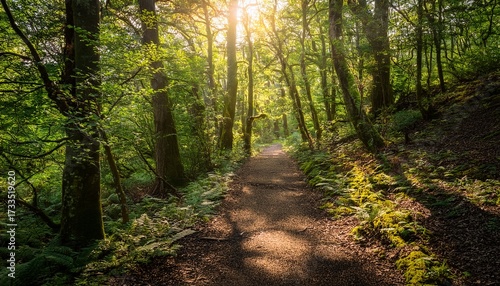 Obraz premium A Path Through A Dense Sun Dappled Forest
