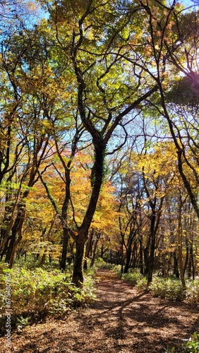 © jongho, Naklejka premium a path through a forest, a woodland path, forest, lane, trail