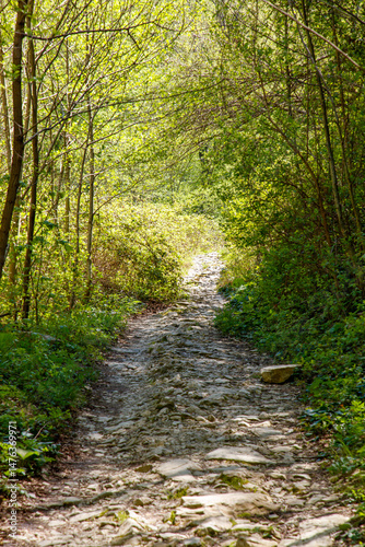 © schankz, Fototapeta premium A path through a forest with a lot of trees and a lot of sunlight