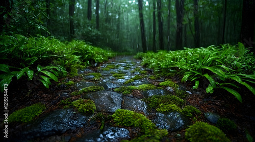 © ClicksdeMexico, Obraz premium A path through a forest with moss and rain