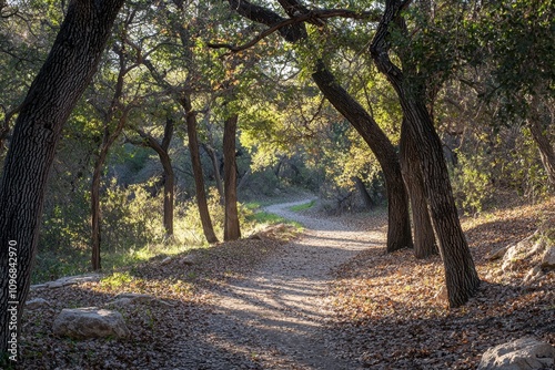 Fototapeta premium A path through a forest with trees on either side