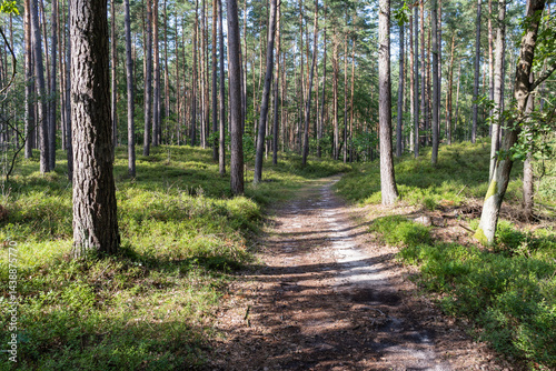 © Ryszard, Fototapeta premium A path through a forest with trees on either side