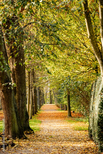 © vip-photoworld, Naklejka premium A path through a forest with trees on either side