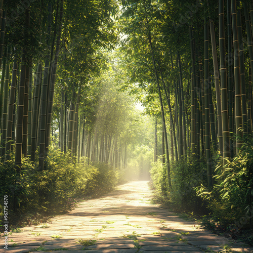 © RedTroSpce AI Gen By, Fototapeta premium A path through a forest with trees on either side