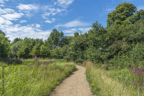 © beataaldridge, Fototapeta premium A path through London Wetlands Center - WWT nature reserve