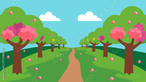 © Kalo, Obraz premium A path through the orchard in the spring