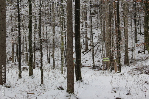 © Primus_1, Fototapeta premium A path through the winter cold forest.