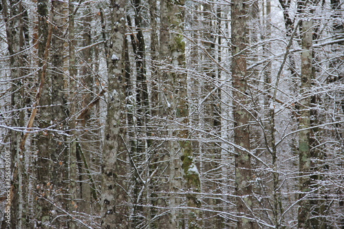 Fototapeta premium A path through the winter cold forest.