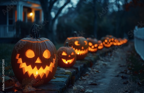 © Anna Baranova, Obraz premium A path with glowing jack-o-lanterns