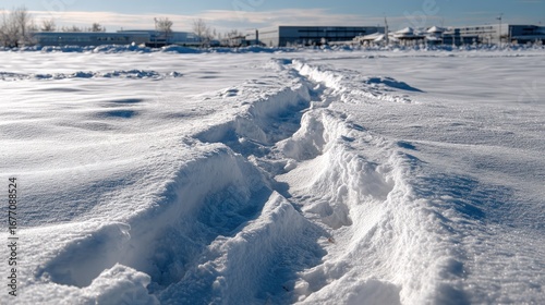 © daanish, Obraz premium A pathway through a field of snow, showcasing windswept drifts and a clear path.