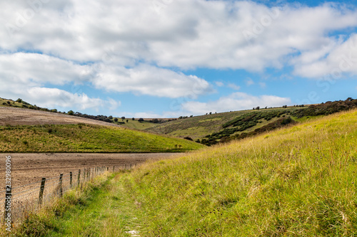 Naklejka premium A pathway through farmland in the South Downs in Sussex