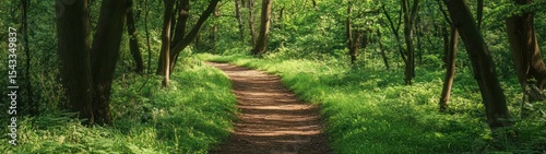 © mbak, Fototapeta premium A pathway winds through a verdant forest.