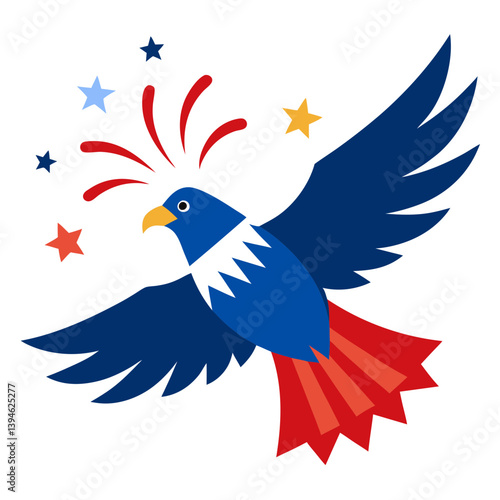 © SREEMOTIBALEKA, Obraz premium A patriotic eagle soaring over fireworks