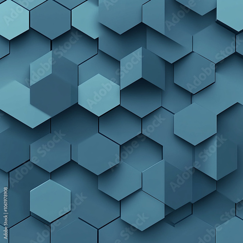Fototapeta premium A pattern of blue hexagons create a 3D effect, like a honeycomb