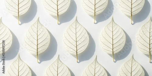 © ABSTRACTARTWORK, Fototapeta premium a pattern of delicate, light-colored leaves arranged. Each leaf has intricate details and a soft, translucent appearance