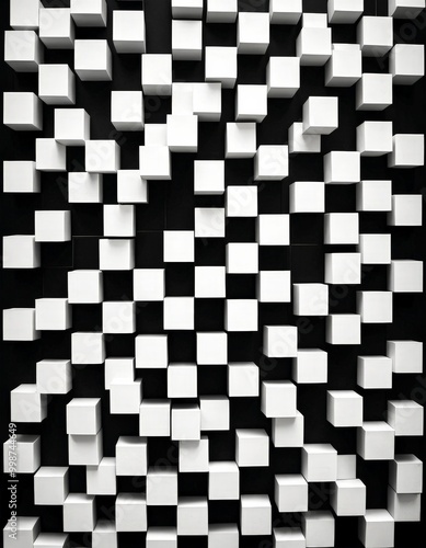 © Bualong, Fototapeta premium A pattern of white cubes arranged in a grid-like pattern against a black background