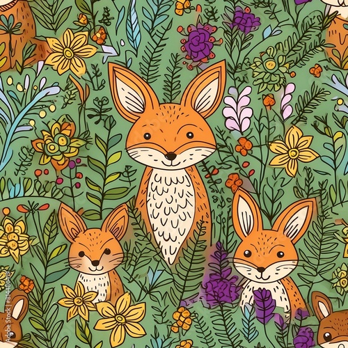 Fototapeta premium a pattern that combines whimsical forest animals like foxes, rabbits, and deer