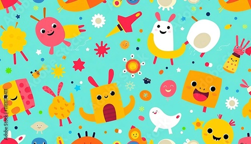 Fototapeta premium a pattern with unusual small figures on a blue background