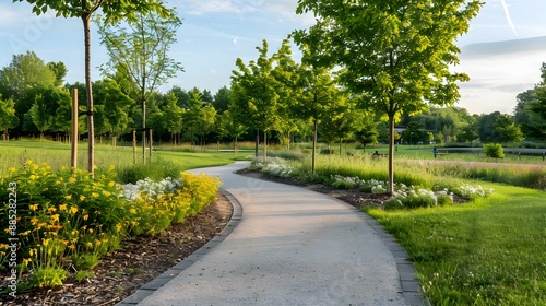 Obraz premium A paved path in a modern park