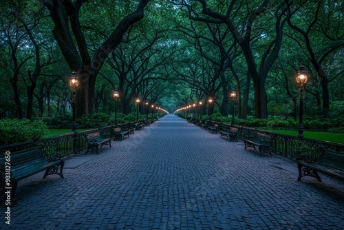 © Outkast, Obraz premium A Paved Pathway Through a Dark and Tranquil Park