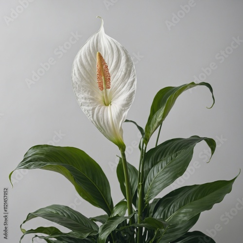 © Dilaver, Fototapeta premium A peace lily in full bloom against a clear, light background.